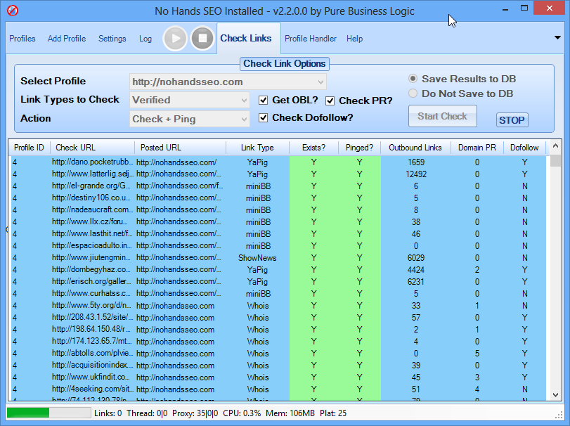 No Hands SEO will take your keywords and find website relevant to them to build links from and then post to them automatically, this ensures that you are getting the best niche relevant backlinks possible. Once a link has been posted it will check that the link is there and if so it will automatically ping that new link so it gets indexed right away and you benefit from it that much quicker.