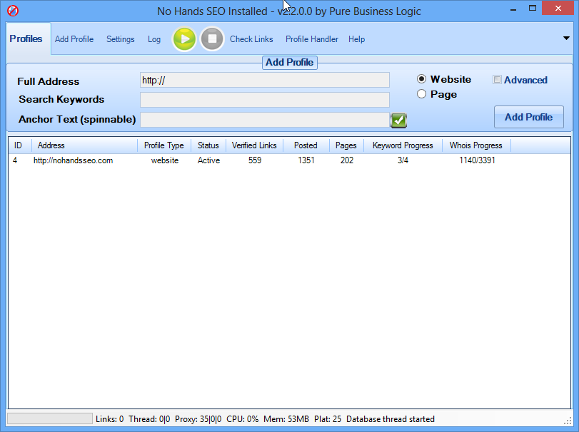 Unlike other backlinking tools that rely on you to constantly feed them NHSEO is fully automated, you enter your profiles and let it work. You literally just press start!